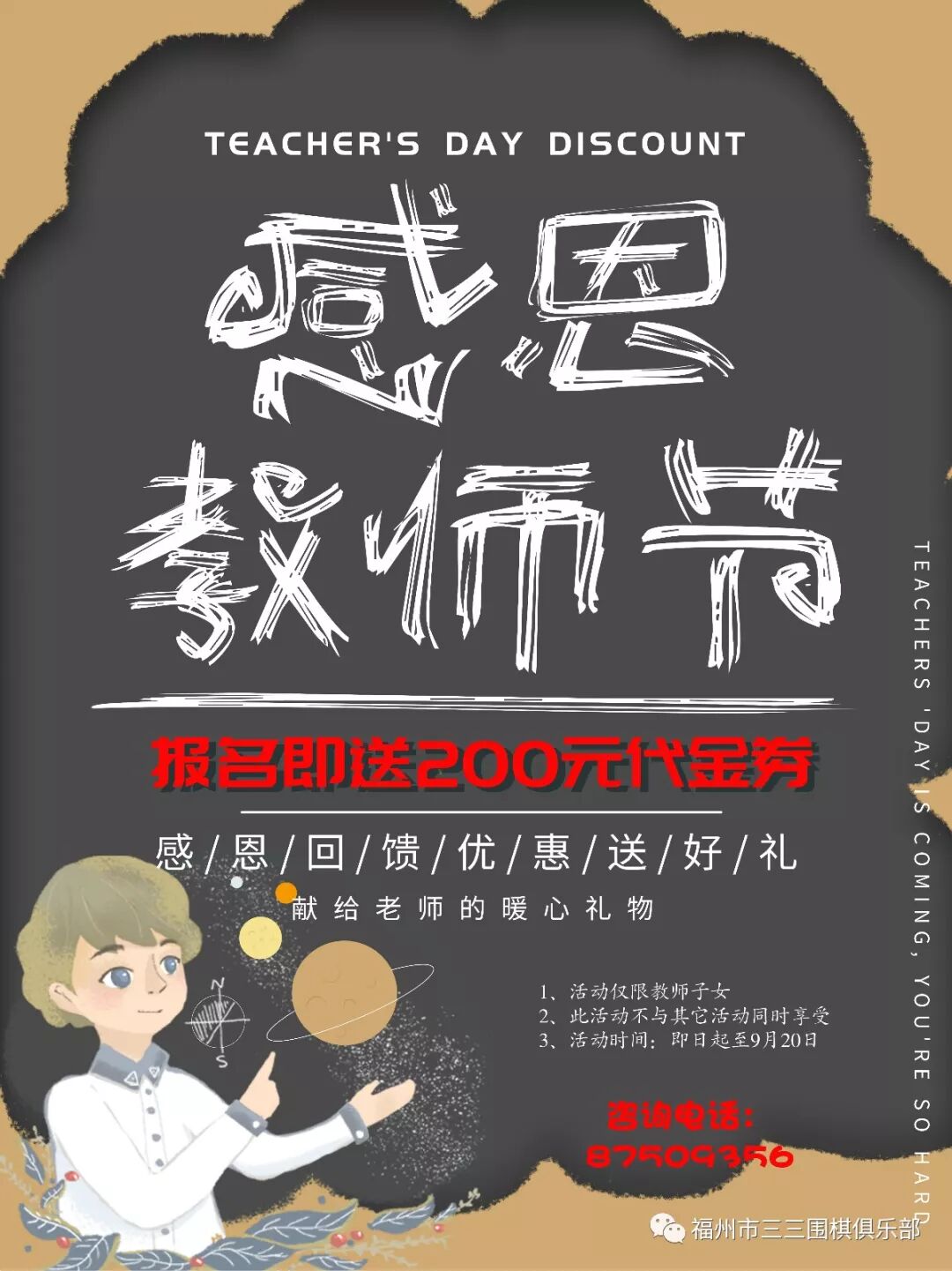 在教师节这么重要的日子里, 三三围棋隆重推出 教师节特惠福利 即日起至9月20日